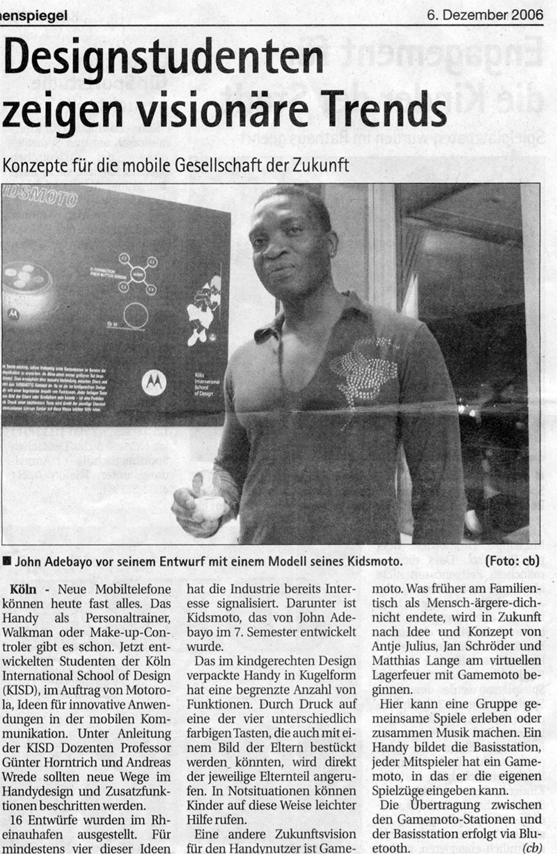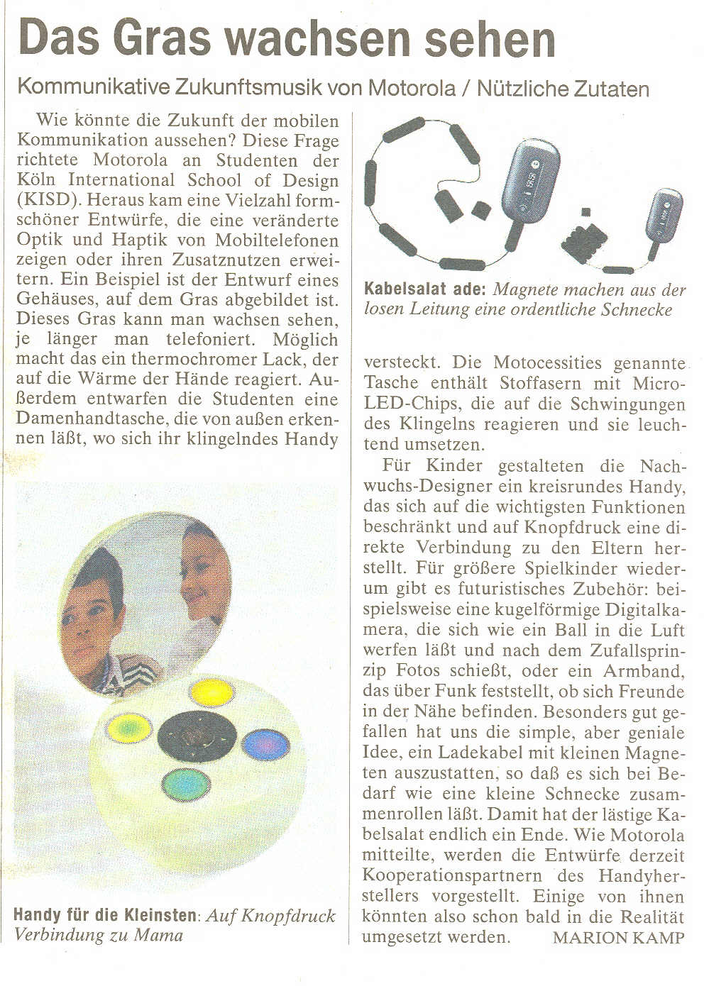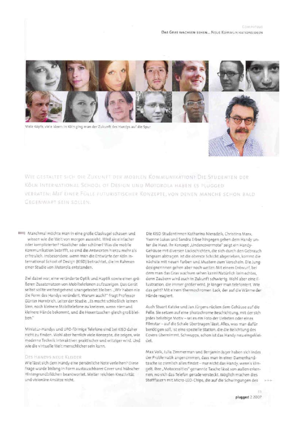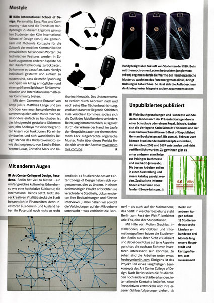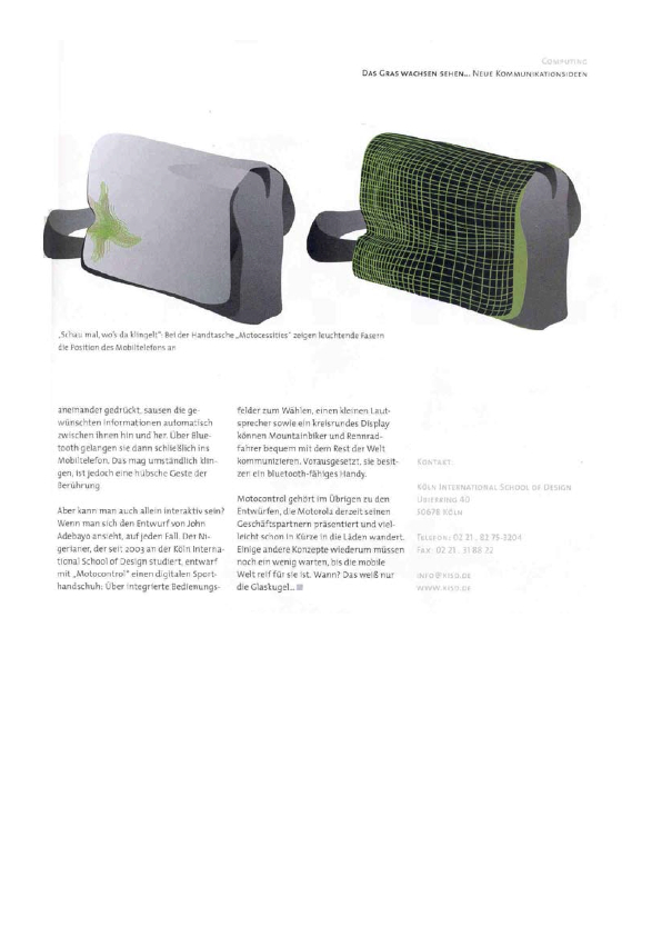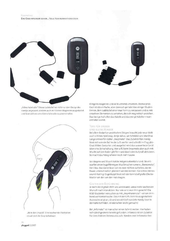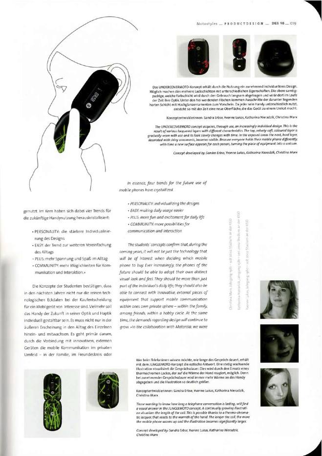 Motorola präsentierte gemeinsam mit Studierenden der renommierten Köln International School of Design (KISD) Konzeptentwürfe für die Zukunft der mobilen Kommunikation. Es sollten neue Wege sowohl in Punkto Handydesign als auch in Bezug auf denkbare Zusatznutzen für den privaten Einsatz beschritten werden. Zentrale Frage war, wie die Zukunft der mobilen Kommunikation aussehen könnte.